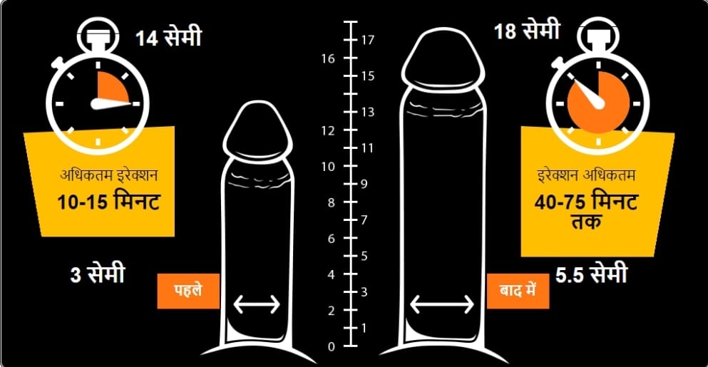 यदि आपने पहले किन्हीं दवाओं के साथ इस समस्या को हल करने की कोशिश की है, तो आप जानते हैं कि सभी प्रयास व्यर्थ रहे थे और यदि कोई प्रभाव हुआ भी, तो उससे केवल इरेक्शन में सुधार हुआ और वह भी बस अस्थायी तौर पर। अगर आप पहली बार इसका प्रयास कर रहे हैं तो आप भाग्यशाली हैं। अब आप सही तरीके के बारे में जान जाएँगे, और बहुत सारे पैसे बचा पाएंगे जो बेकार उत्पादों पर खर्च हो सकते थे। मैं आपको अपने सहायक राजेश की एक असली तस्वीर दिखाना चाहता हूँ। उसका लिंग 8.9 सेमी बढ़ गया, और संभोग की अवधि 15 मिनट बढ़ गई।